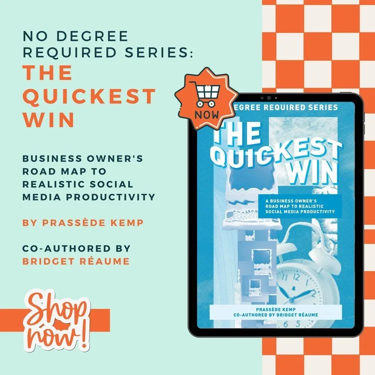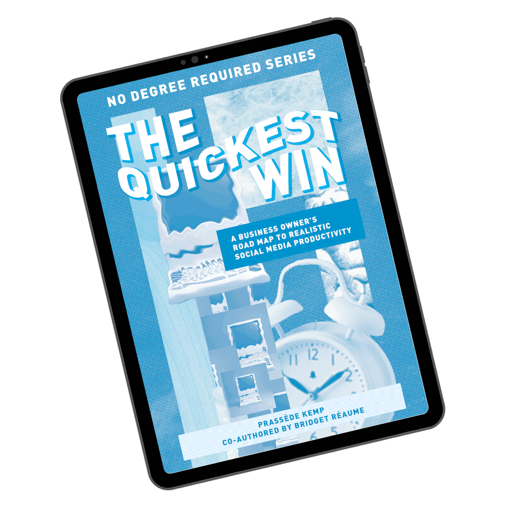 I wrote the ‘No Degree Required’ series with you in mind. You, the busy business owner, the entrepreneur, the face of your brand. A series of e-books with all of the biggest lessons I’ve learned throughout my career. All the most practical solutions I’ve brought into people’s business to get social media working FOR them.