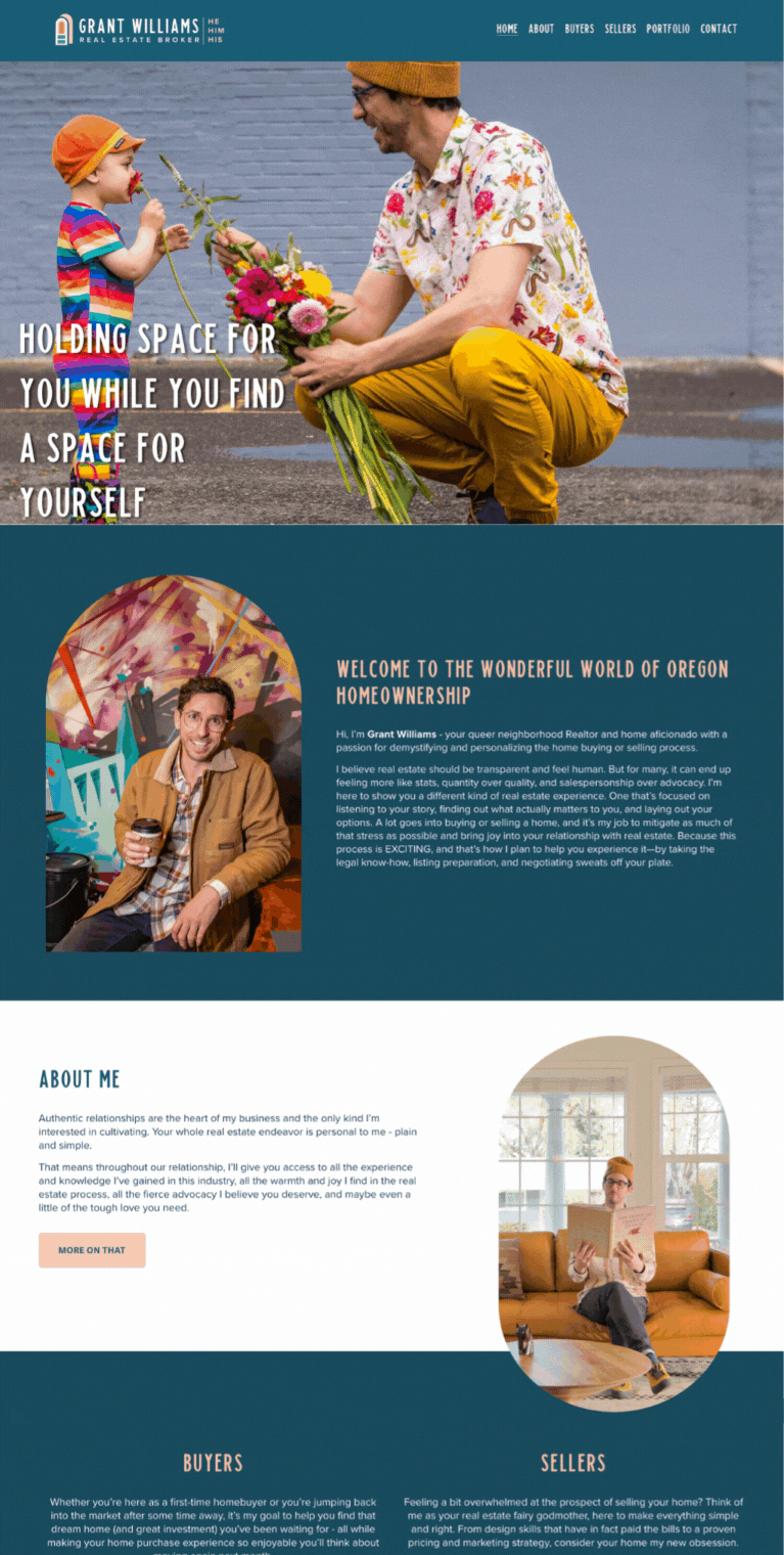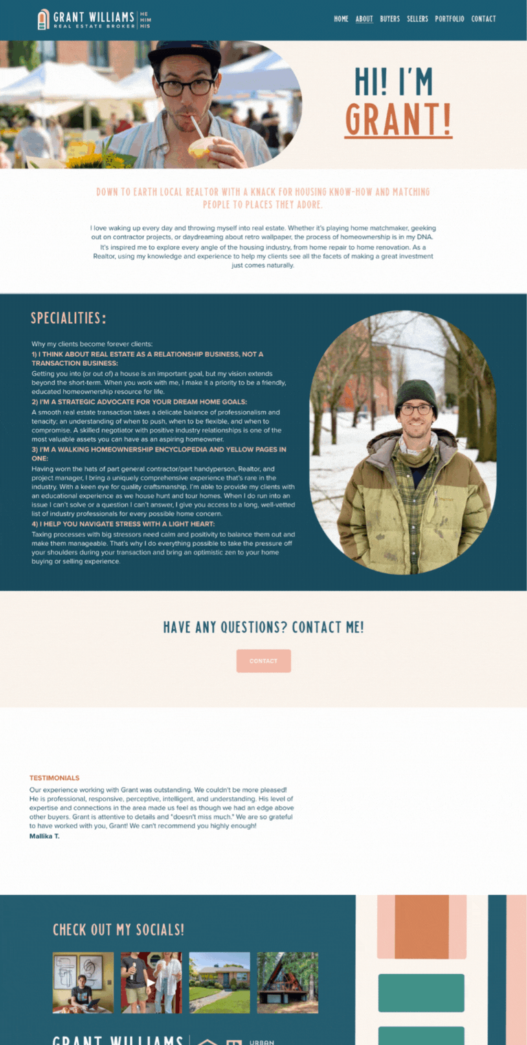 From branding development, to mockups, to web design. We created Grant Willams website from the ground up! Playing with abstract shapes, overlapping sections, and personalized intake forms.