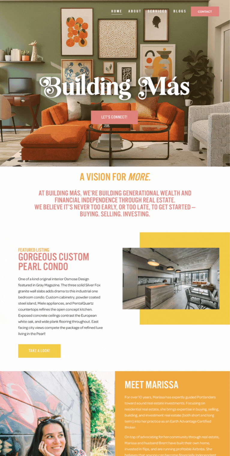 Check out this colorful beauty! Website is inspired by southwest contemporary design and architecture. A minimalistic look with pops of bright orange and yellow color blocks.