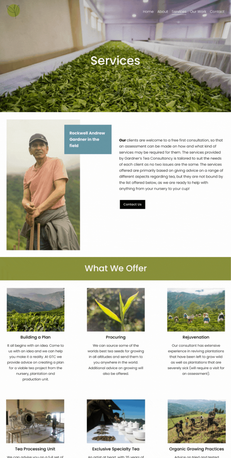 A client that specializes in yummy teas. Logo design and web design most inspired by earthy tones, and a clean professional look. Making sure that all services they provide was clear to read for their customers.